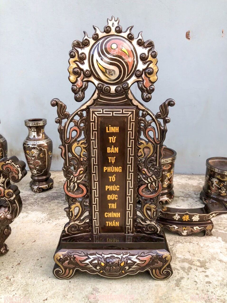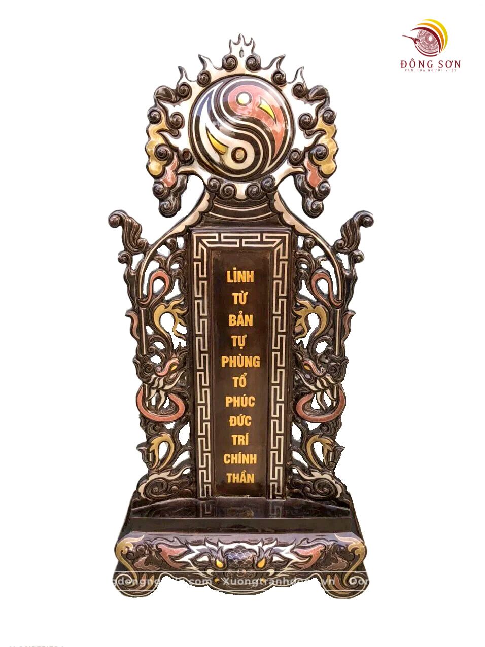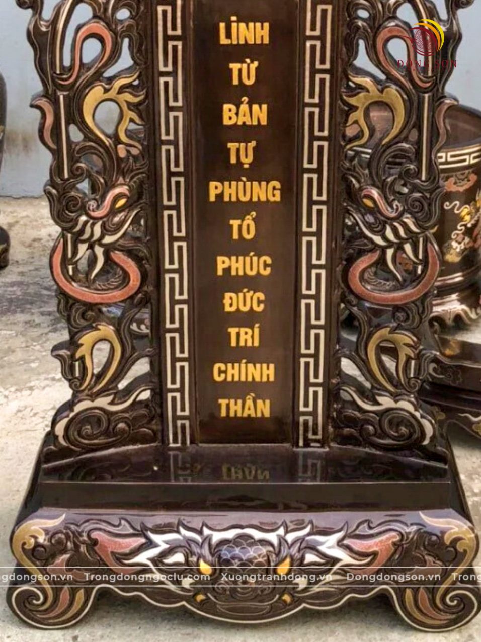 Bài vị đồng đỏ khảm ngũ sắc cao 60 chữ quốc ngữ | Đồ thờ bằng đồng đẹp