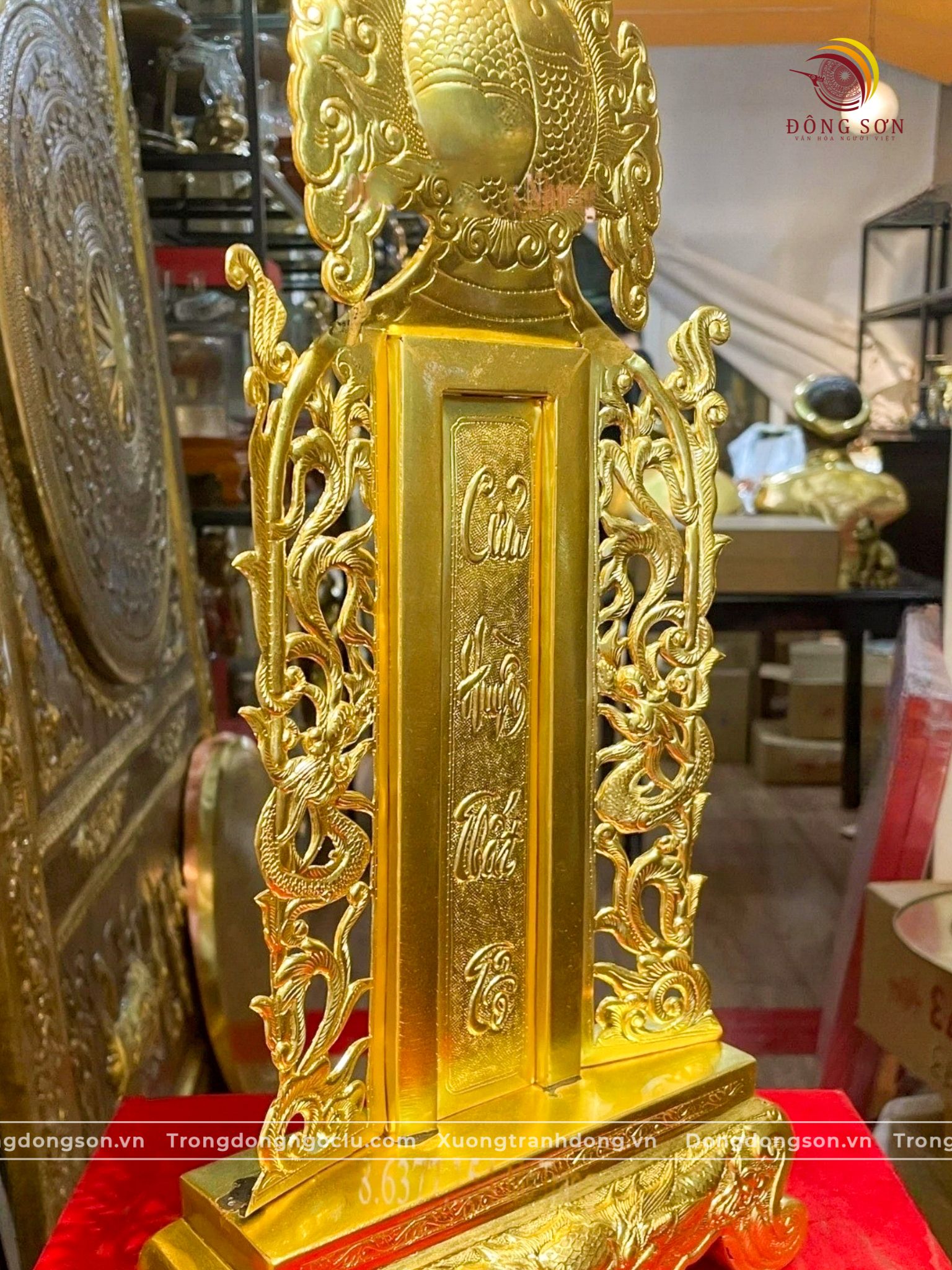 Bài vị đồng vàng cao 41cm dát vàng 14K | Đồ thờ bằng đồng đẹp ý nghĩa