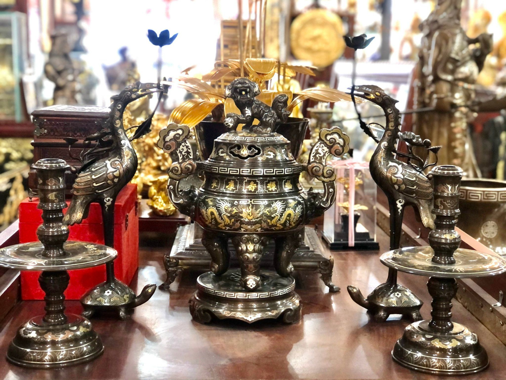 | Tên sản phẩm | Bộ ngũ sự bằng đồng đỏ khảm ngũ sắc |