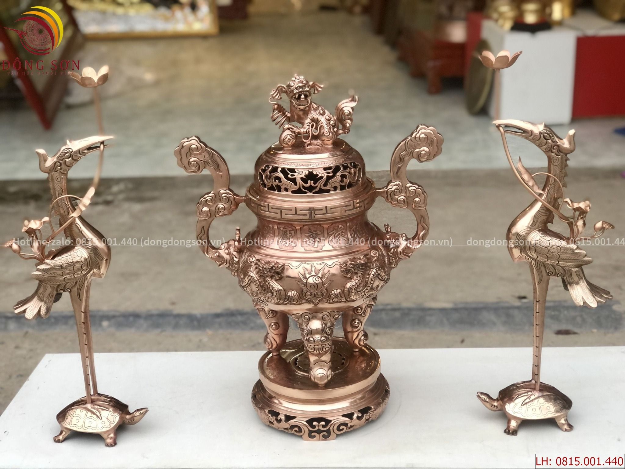 | Tên sản phẩm | Bộ tam sự hạc đồng vàng song long chầu nguyệt |