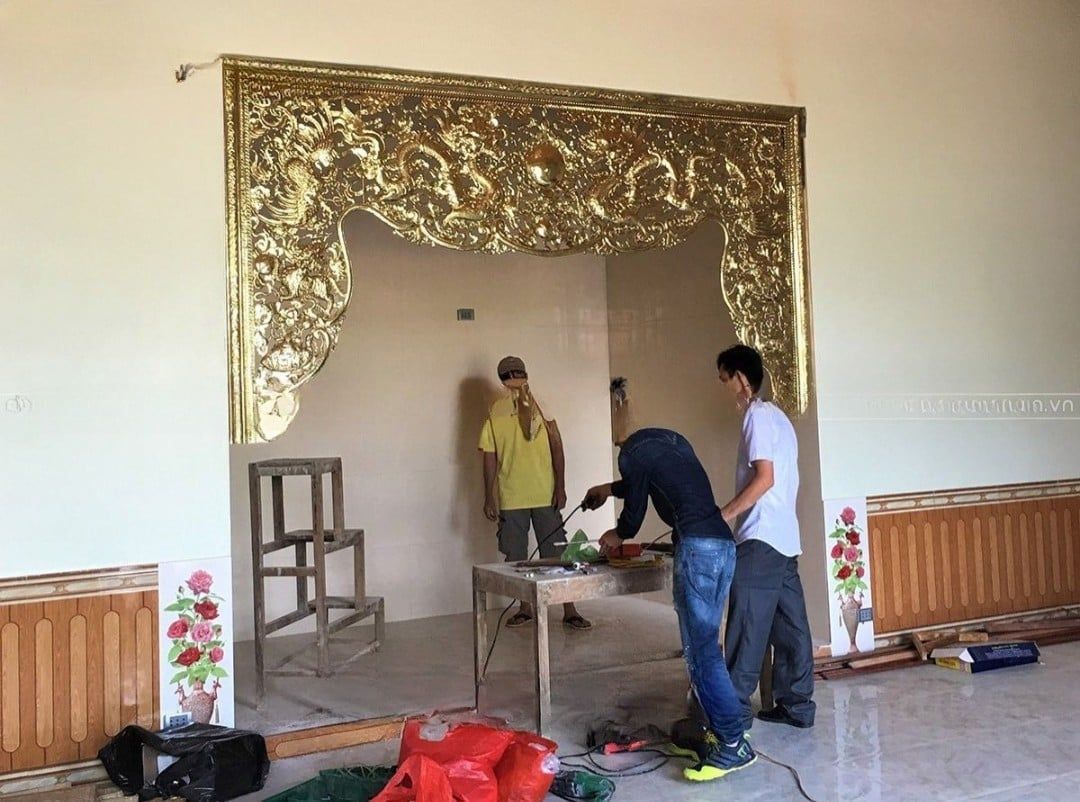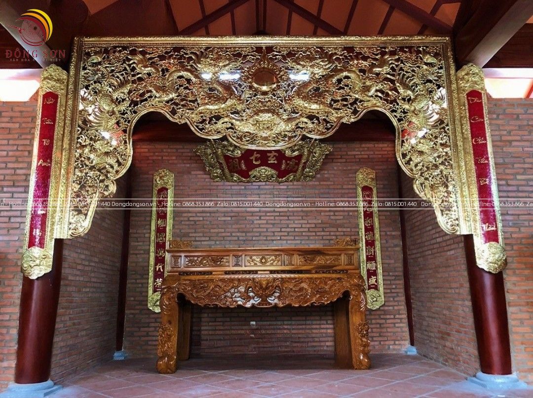 Cửa võng bằng đồng vàng dát vàng - Võng thờ bằng đồng