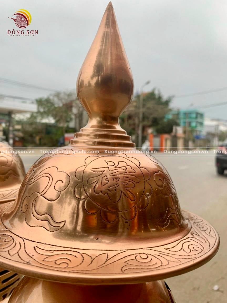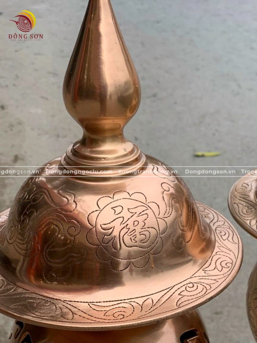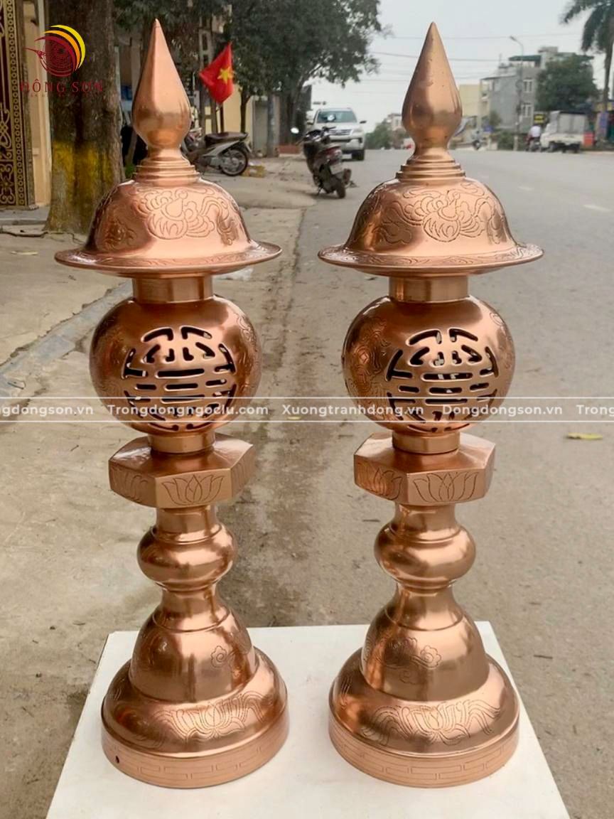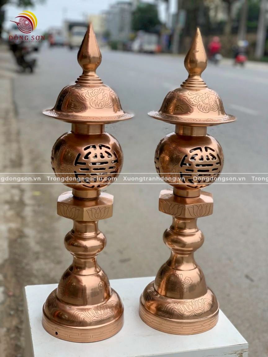 Đèn dầu đồng đỏ đúc cao 60cm - Đồ thờ bằng đồng đẹp