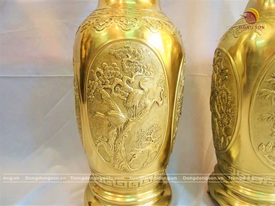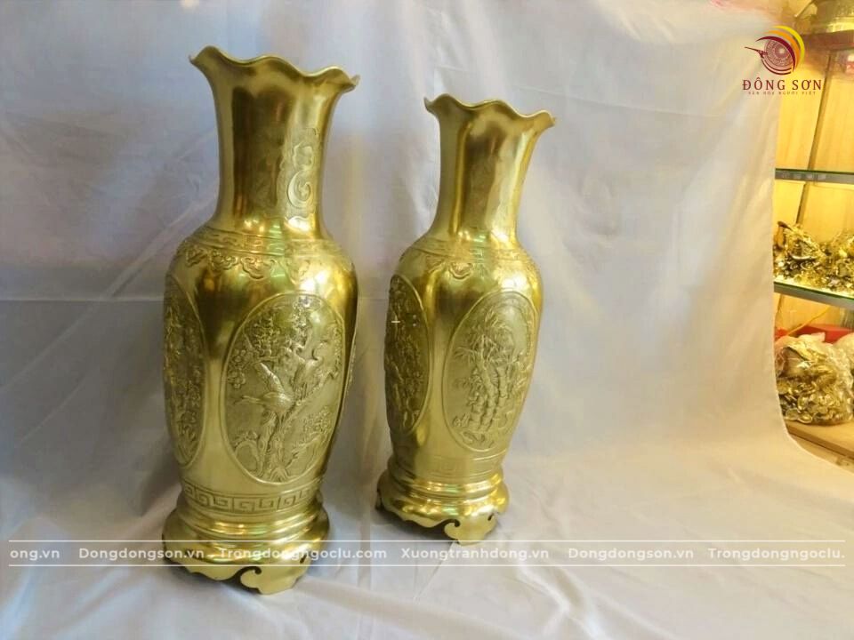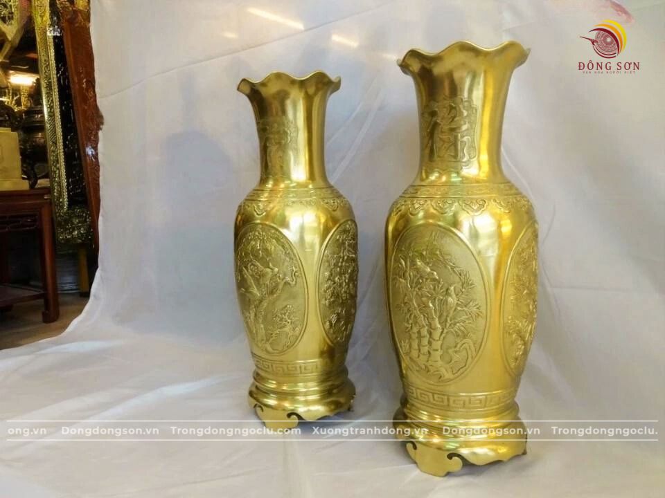 ĐÔI BÌNH BÔNG TỨ QÚY BẰNG ĐỒNG CATUT CAO 70CM