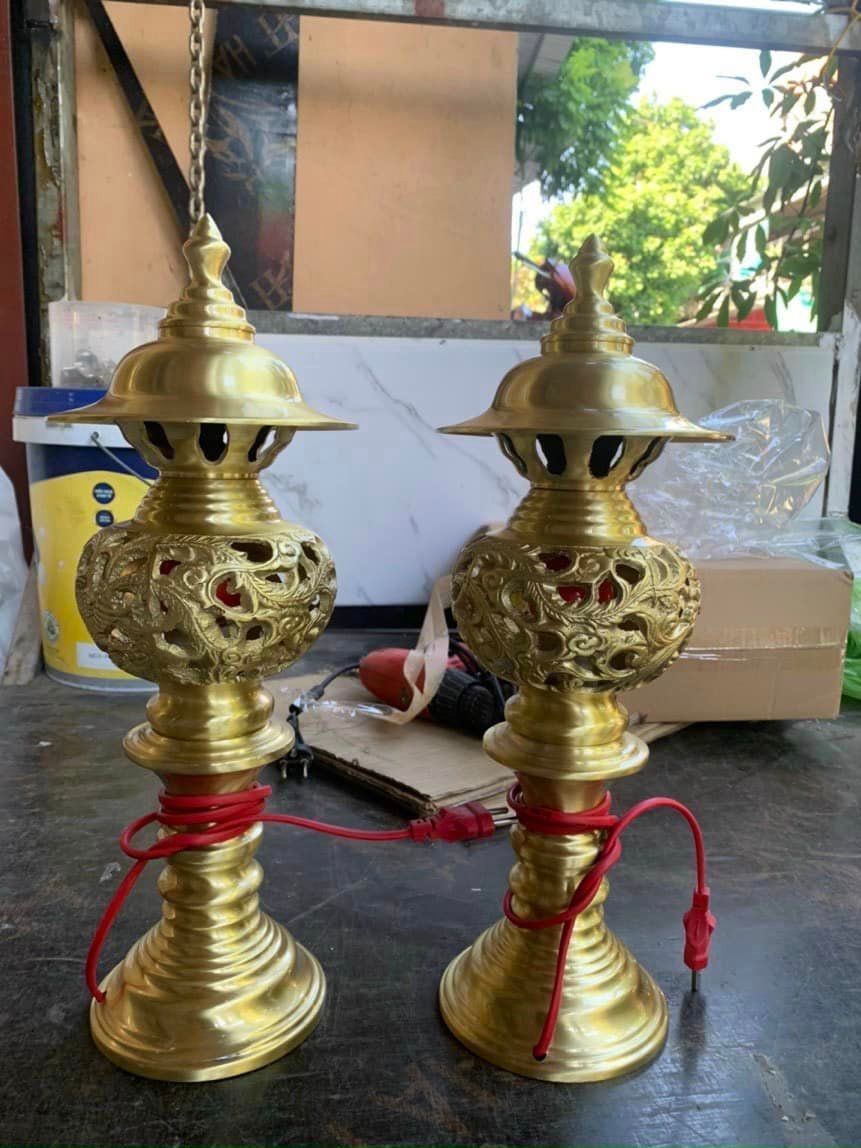 Đôi đèn dầu đồng vàng chạm rồng 43cm - Tinh hoa nghệ thuật mỹ nghệ