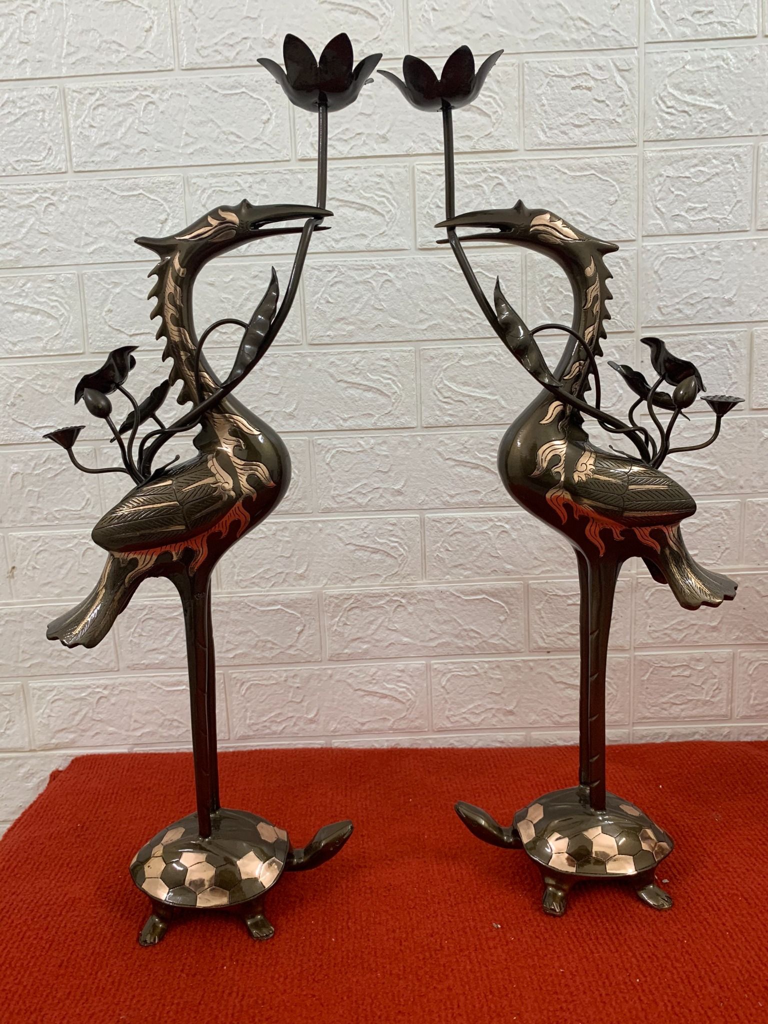 Hình ảnh hạc ngậm sen đứng trên lưng rùa là biểu tượng của sự kết hợp âm dương, đất trời, thể hiện mong ước một đời bình an, yên ấm của mỗi gia đình. Trong phong thủy, ý nghĩa đôi hạc thờ cúng được xem như một biện pháp “trấn phong thủy”, có khả năng ngăn chặn tà khí, điều không may mắn xâm nhập vào nhà