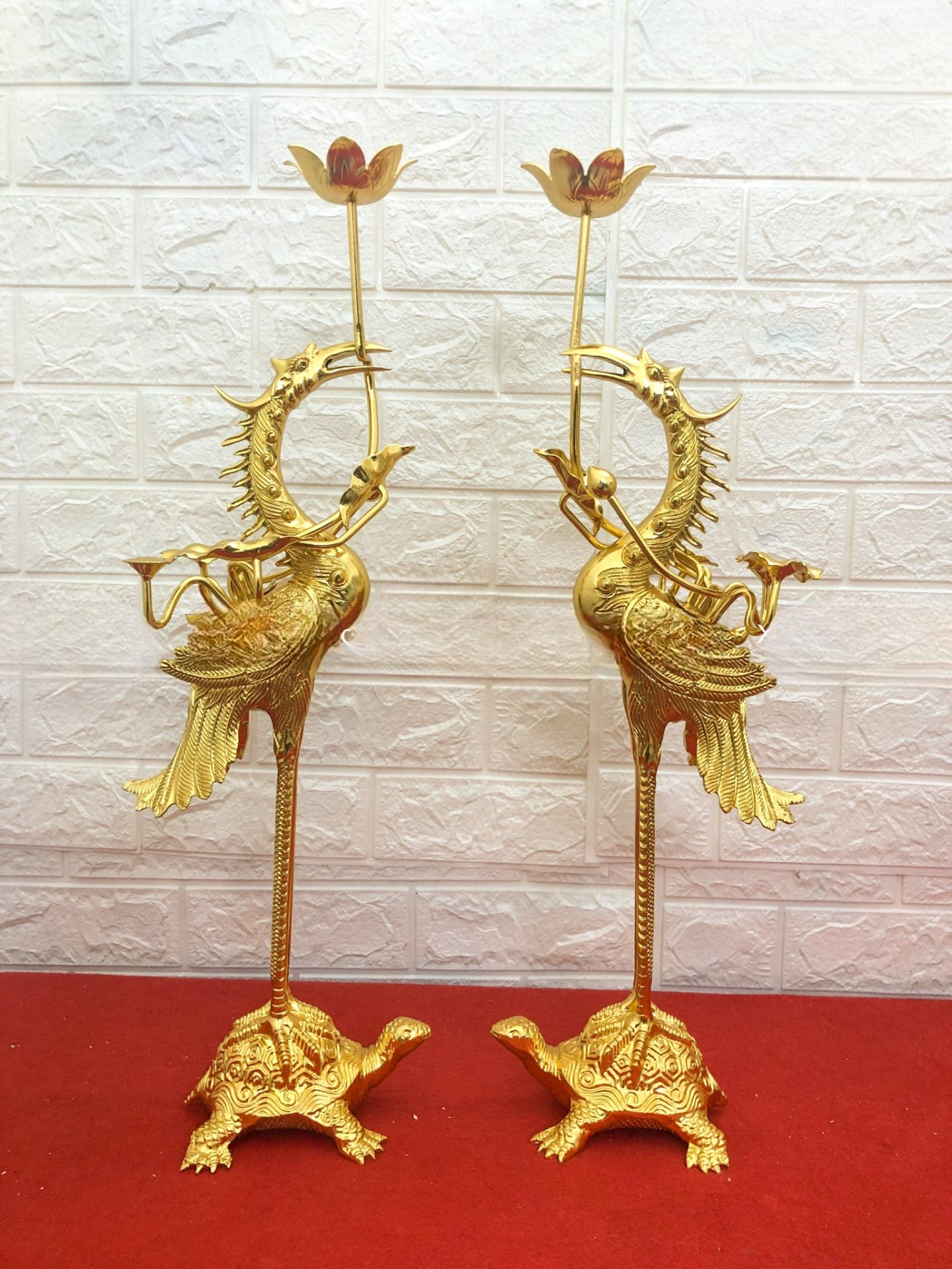 Hình ảnh hạc ngậm sen đứng trên lưng rùa là biểu tượng của sự kết hợp âm dương, đất trời, thể hiện mong ước một đời bình an, yên ấm của mỗi gia đình. Trong phong thủy, ý nghĩa đôi hạc thờ cúng được xem như một biện pháp “trấn phong thủy”, có khả năng ngăn chặn tà khí, điều không may mắn xâm nhập vào nhà