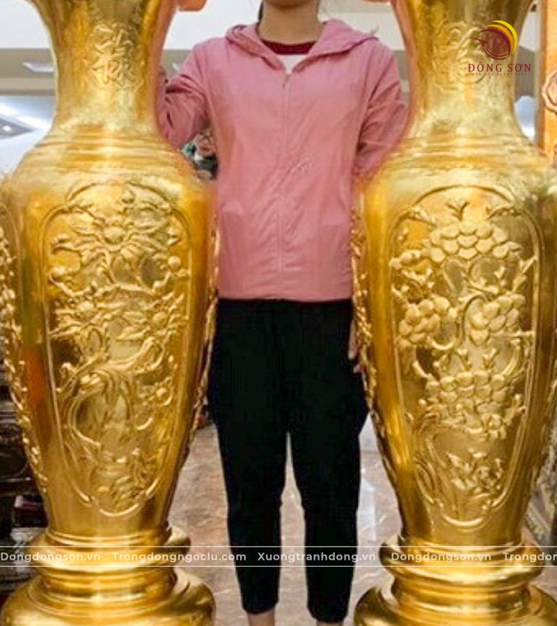 Đôi lọ lộc bình phong thủy họa tiết tứ quý 1m2 dát vàng