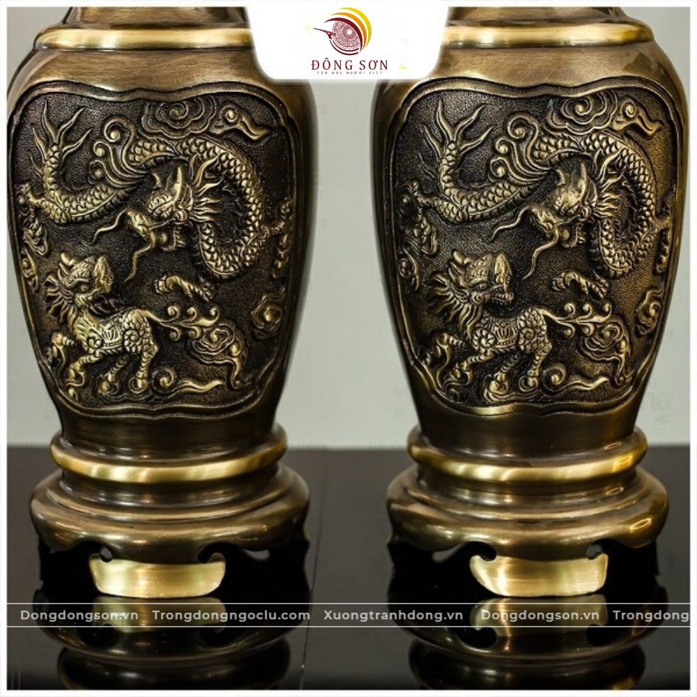 Lọ hoa thờ chạm Tứ linh bằng đồng vàng 2 công nghệ 42cm