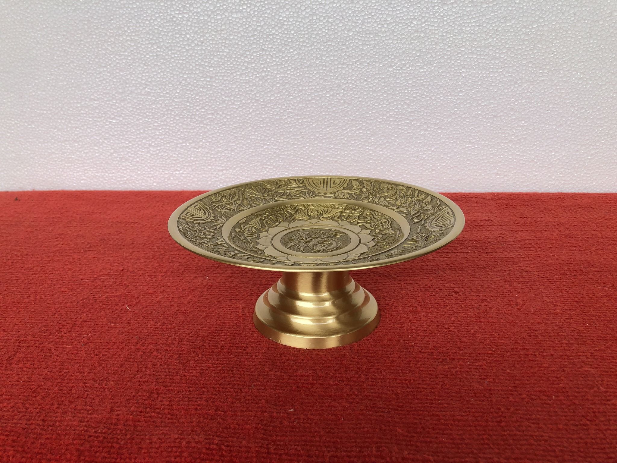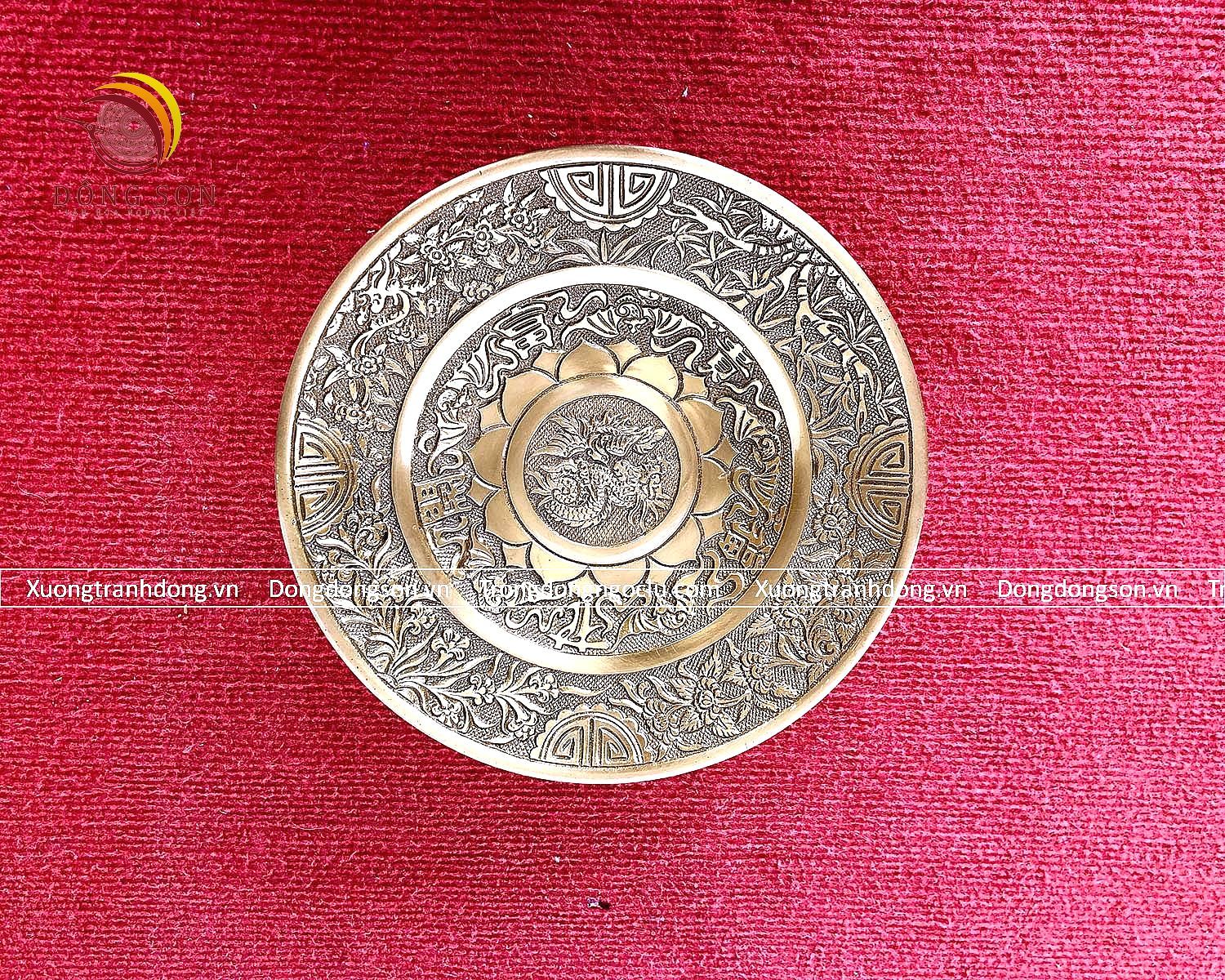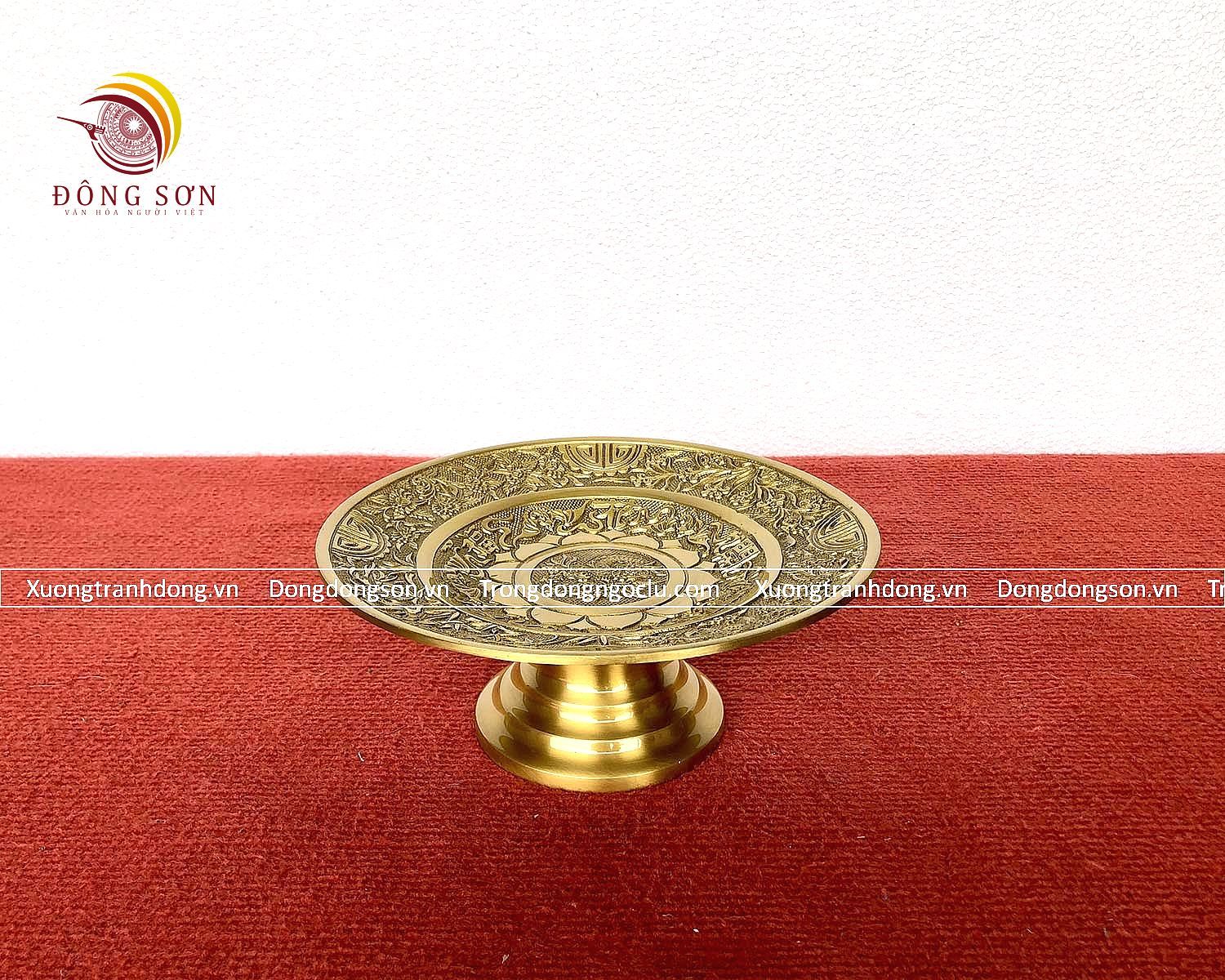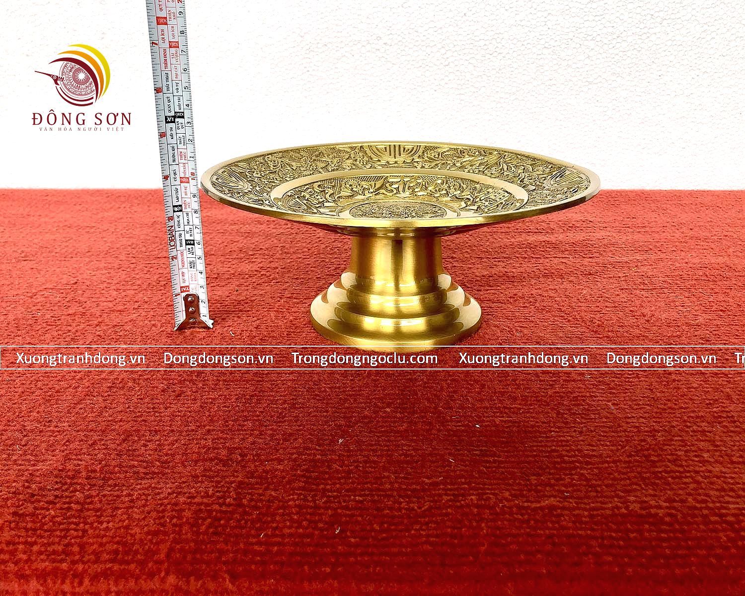 Mâm bồng bằng đồng vàng họa tiết chữ phúc hóa rồng màu vàng mộc đường kính 24cm - phụ kiện đồ thờ