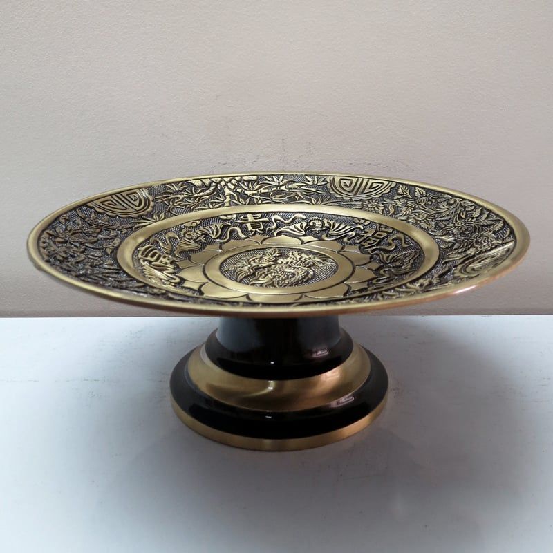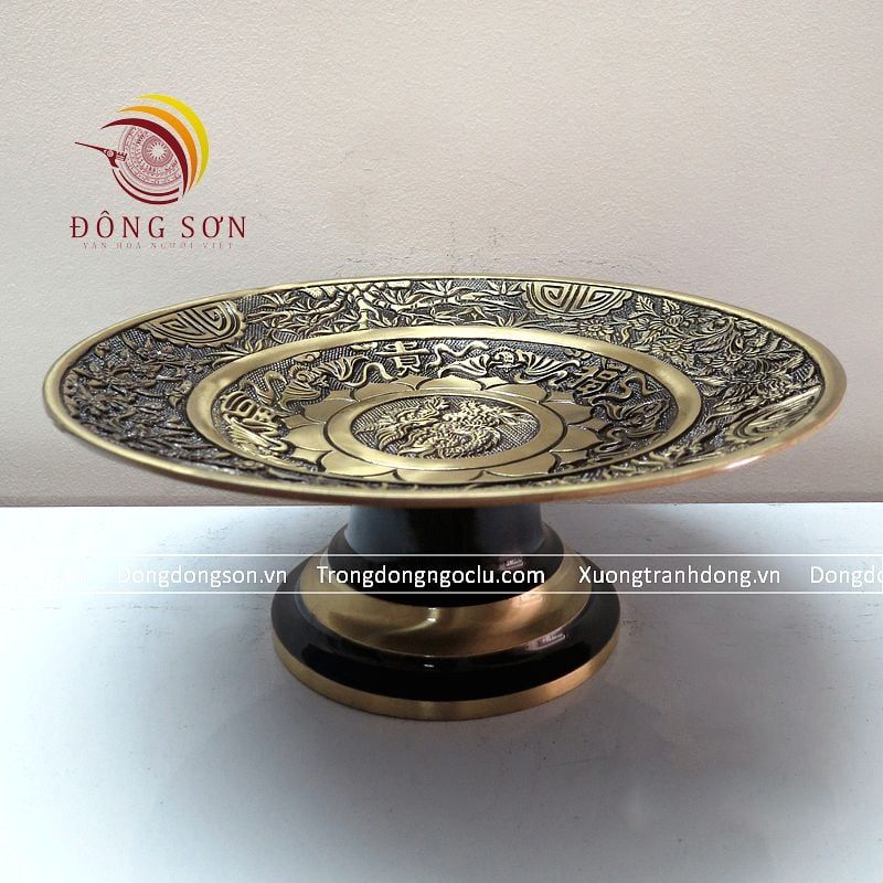 Mâm bồng chữ Phúc hóa rồng bằng đồng màu ánh tím đường kính 35cm - phụ kiện đồ thờ