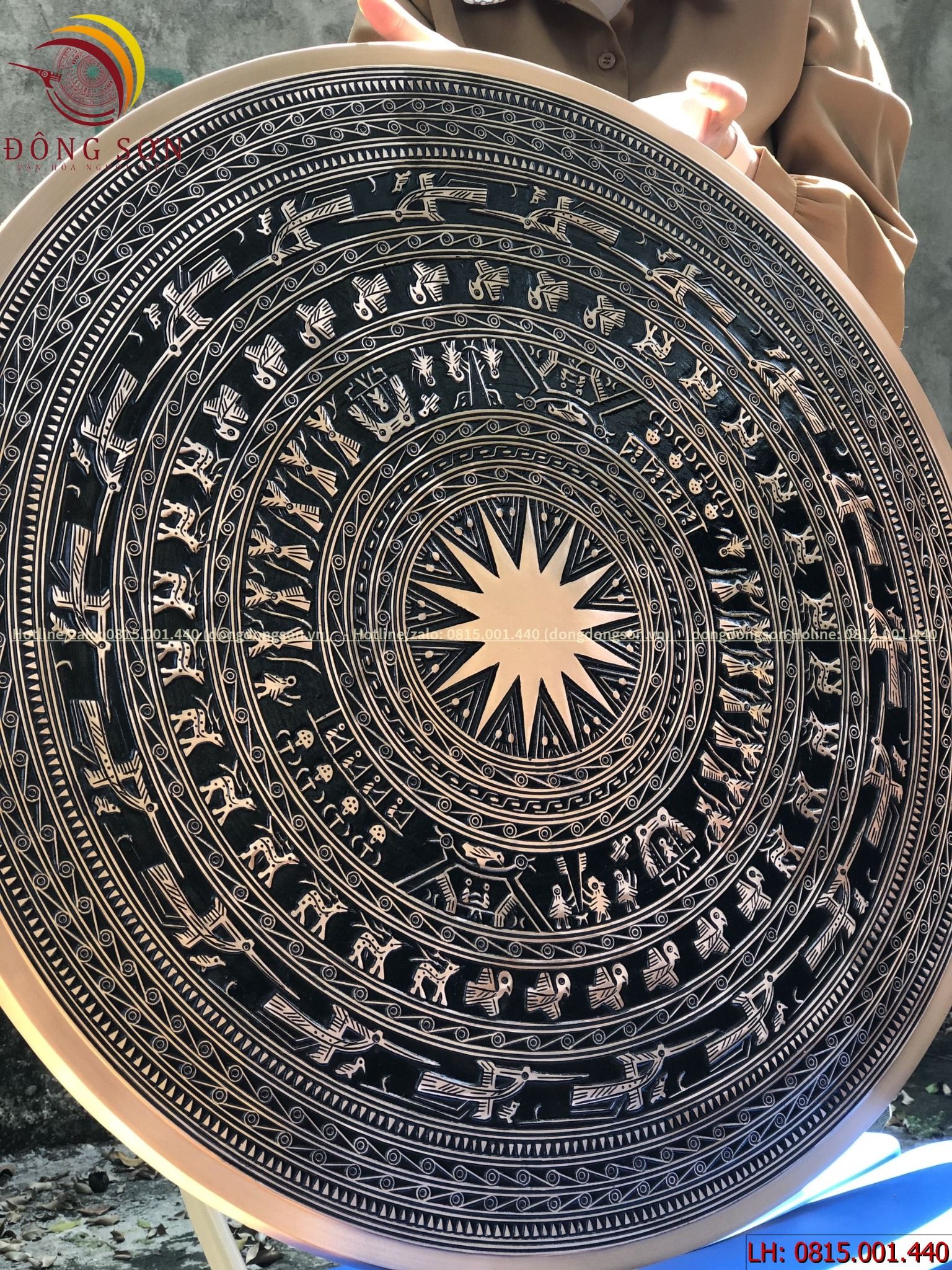 Mặt trống đồng đỏ đúc nổi nền đen | mặt trống đồng đông sơn ĐK 68cm