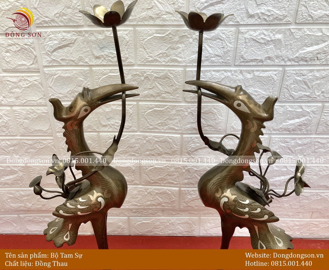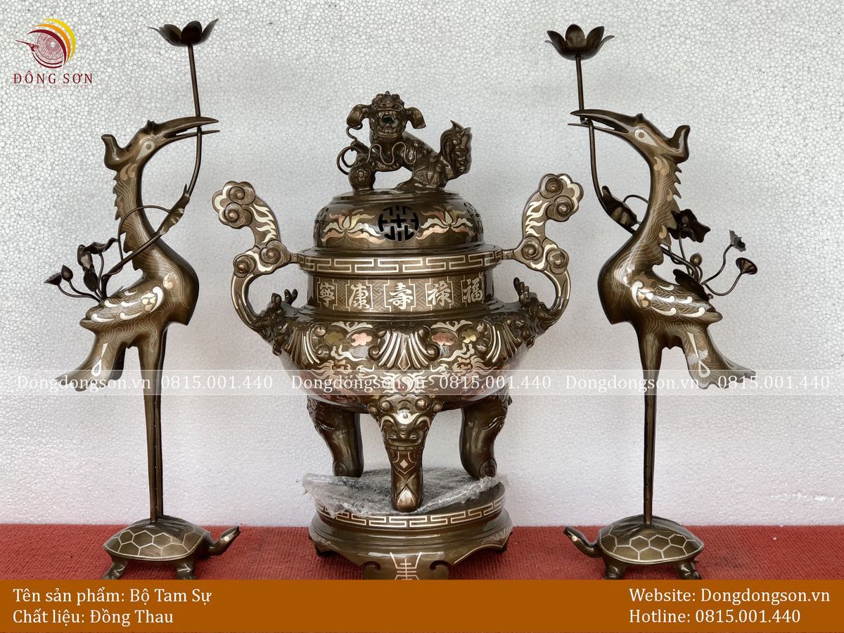 Tam sự hạc khảm tam khí 50cm hoa sòi