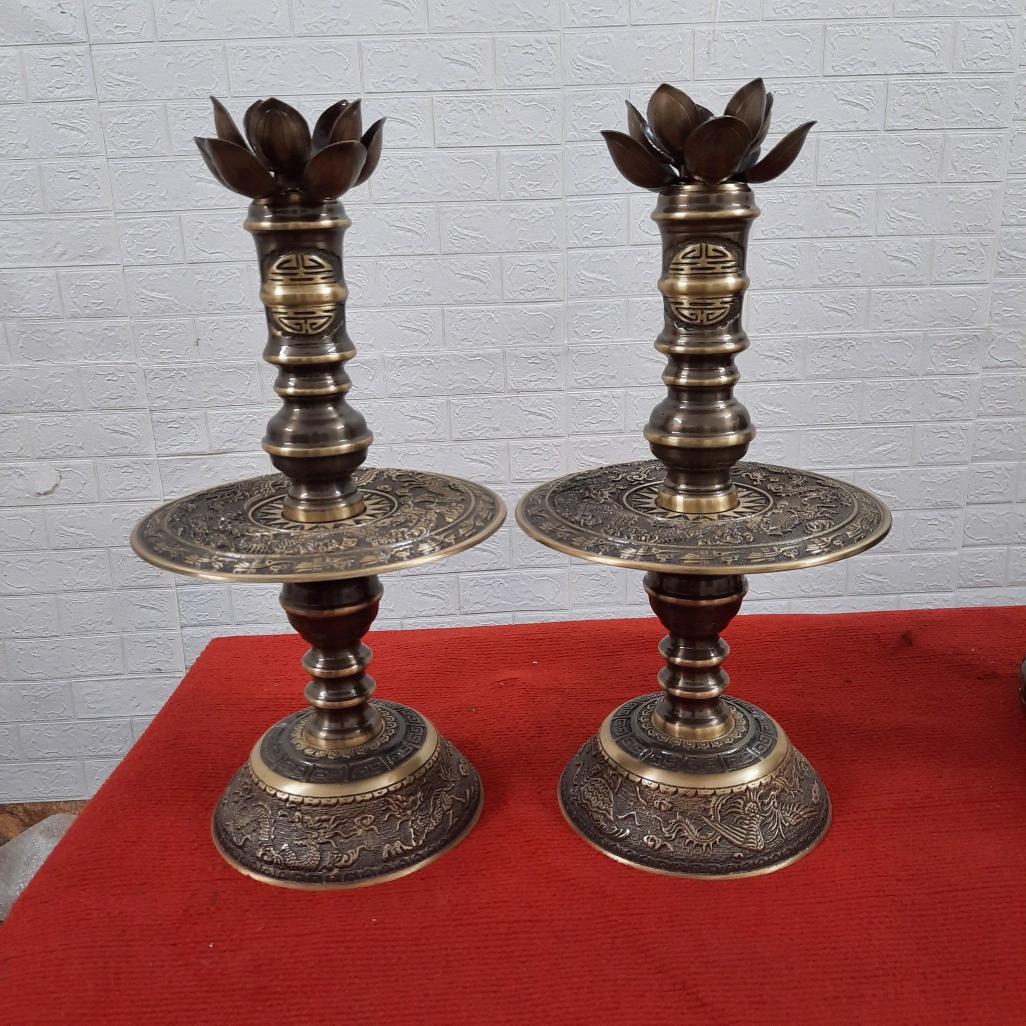 | Tên sản phẩm | Tam sự nến đồng thau 40cm hoa sòi hun nâu |