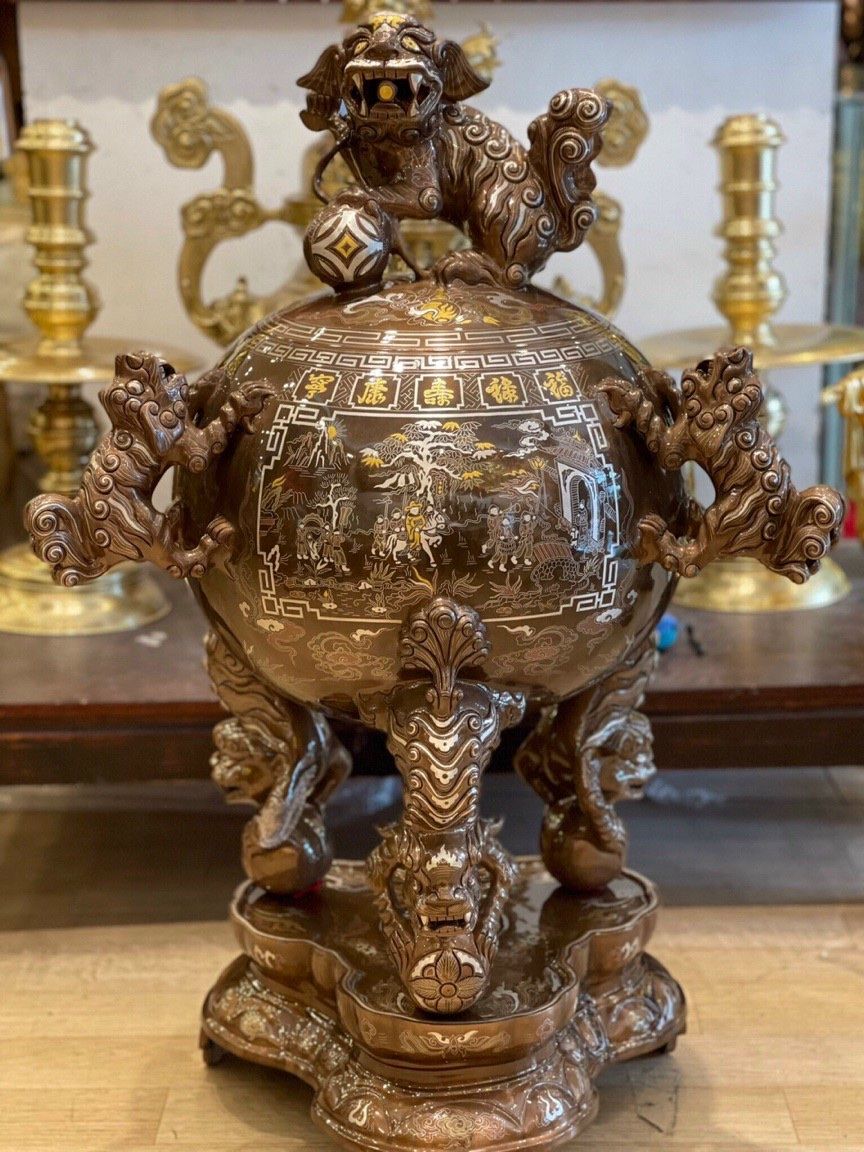 | Màu sắc | Khảm ngũ sắc (vàng ta, bạc ta, đồng xanh, đồng đỏ, đồng vàng) |