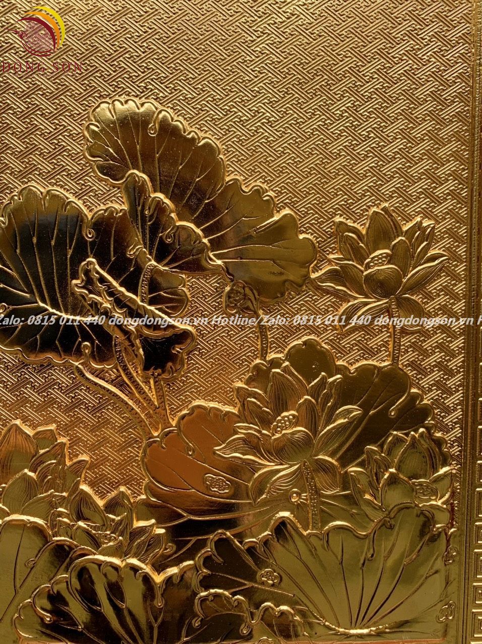 Tranh hoa sen đồng vàng mạ vàng 24k KT 61x88cm