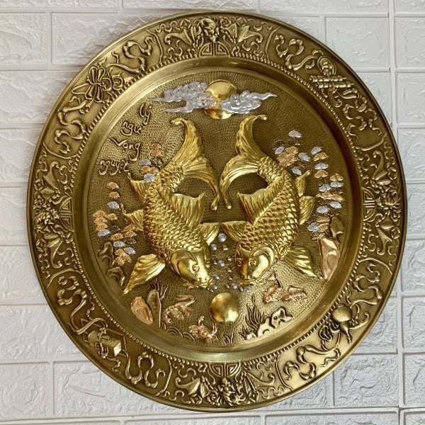 Tranh mâm song ngư bằng đồng