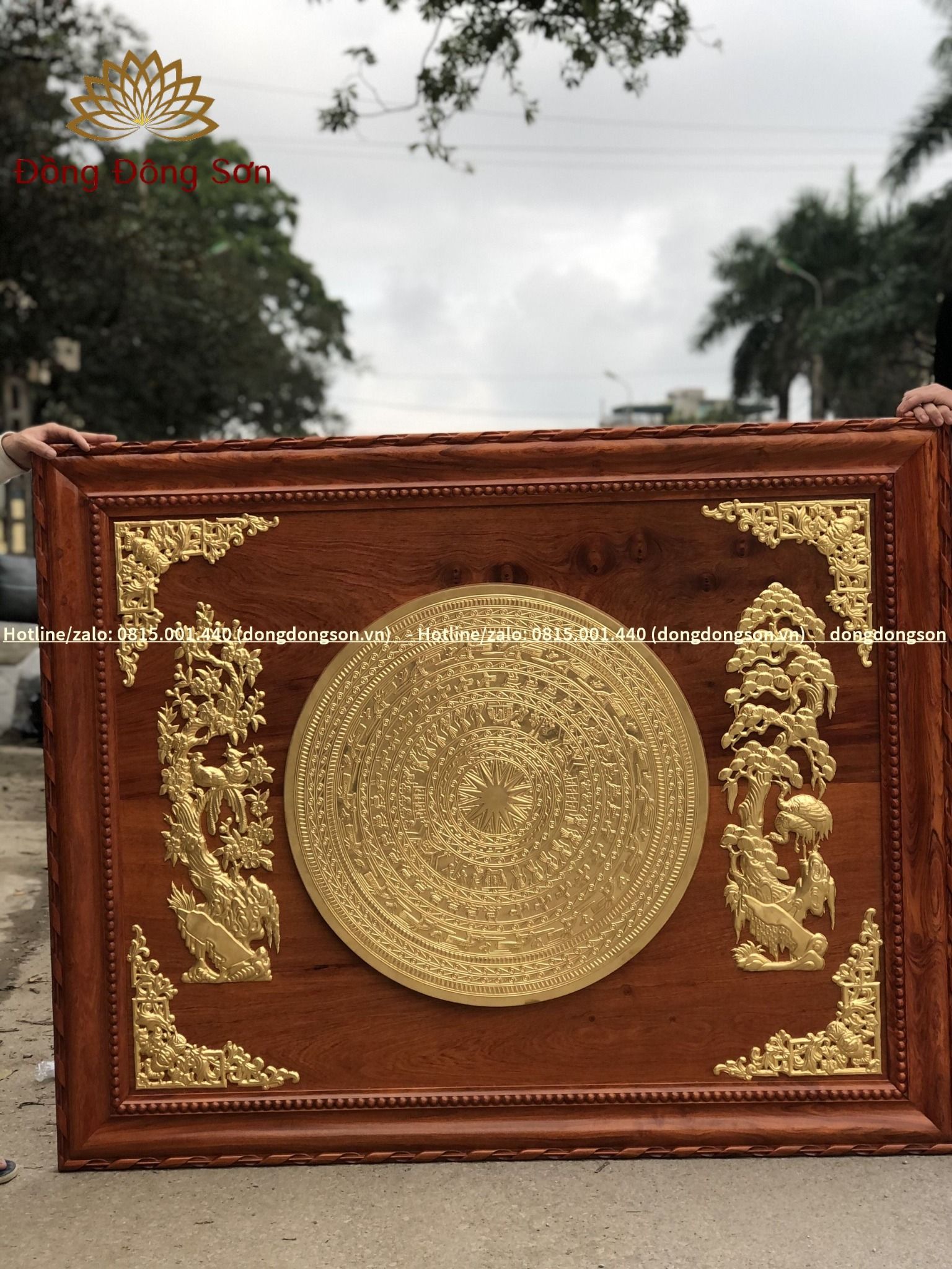 Tranh trống đồng đông sơn đồng đỏ đúc dát vàng 24k hoạ tiết trúc mai | tranh trống đồng khung Hương KT 170x120cm