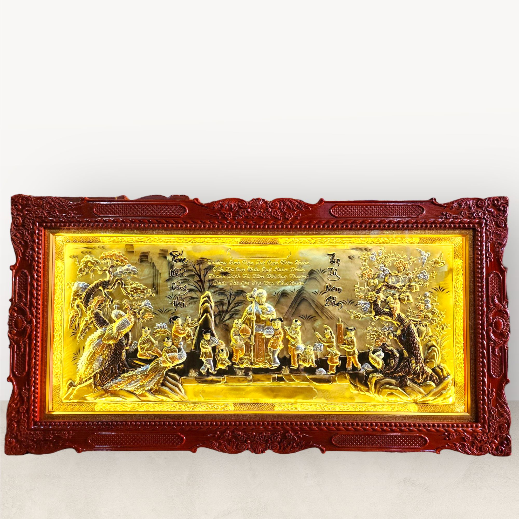 Tranh Mừng Thọ Bà xước dát vàng bạc khung đục KT80x155m - tranh quà tặng Đồng Đông Sơn