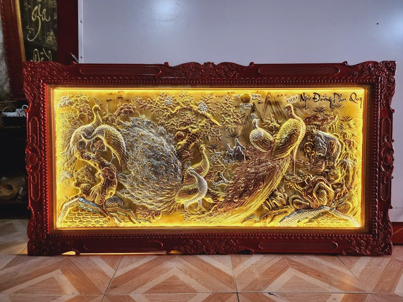 Lắp đặt xong bức chim công hoa mẫu đơn hàng Vip cho Anh Sơn - TP.Thanh Hóa