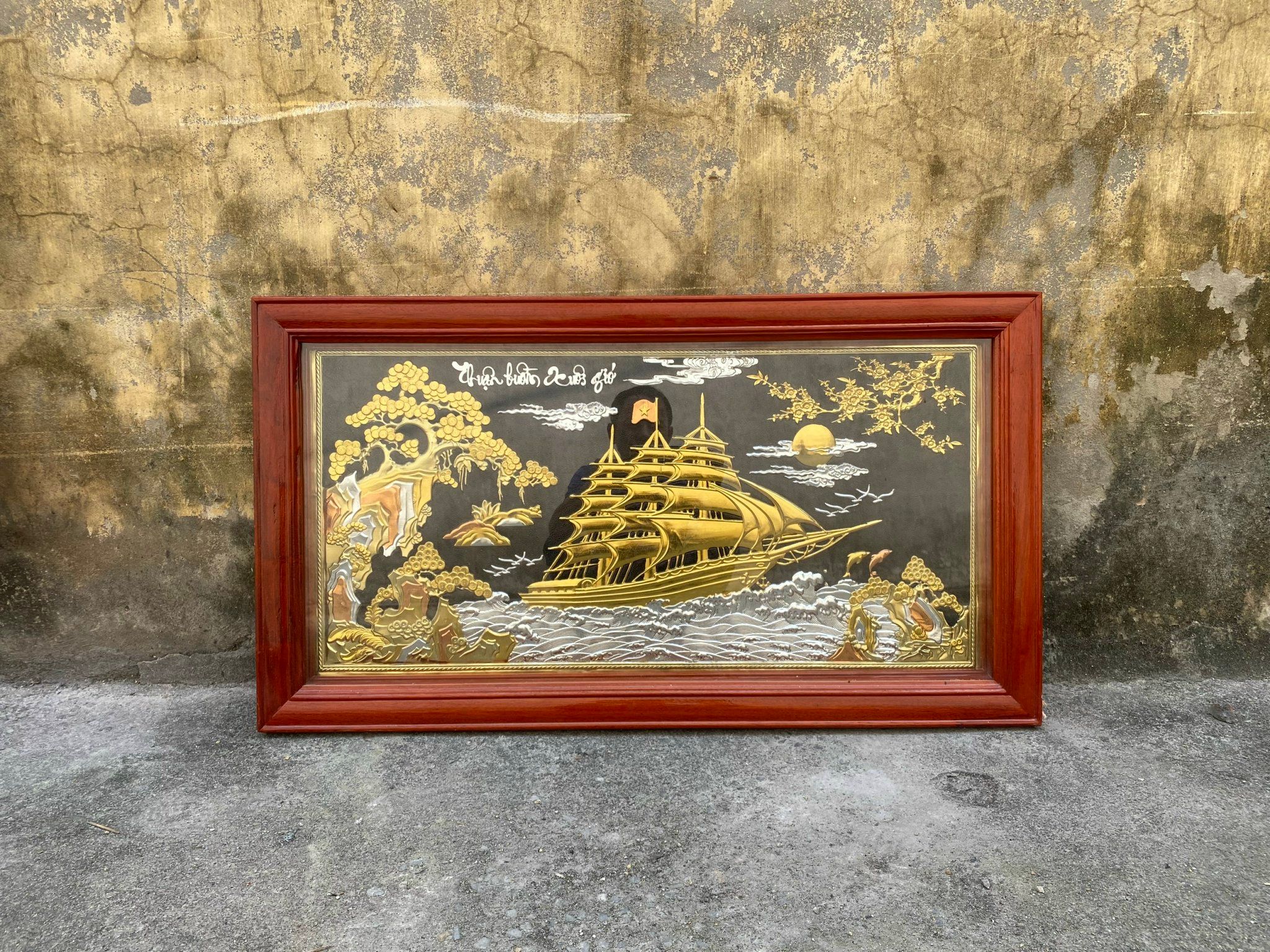 Tranh thuận buồm xuôi gió bằng đồng dát vàng bạc KT 90x50cm - Tranh quà tặng