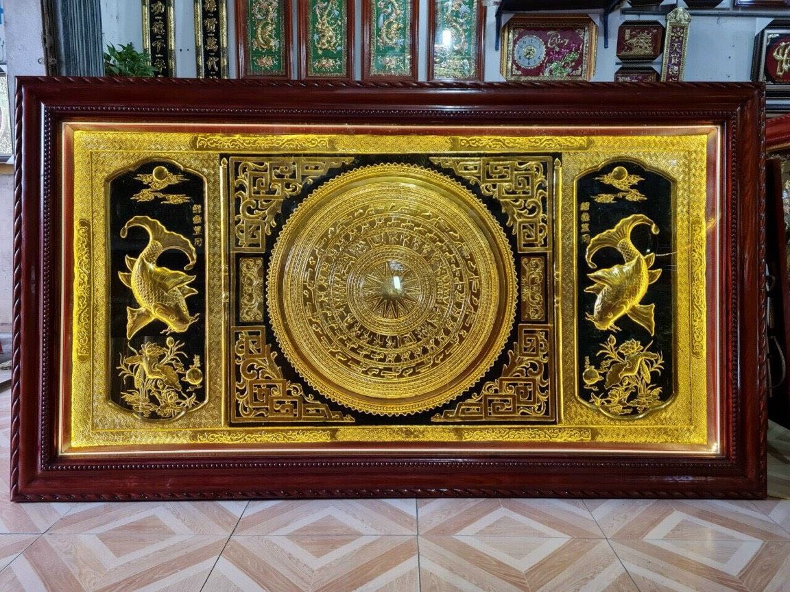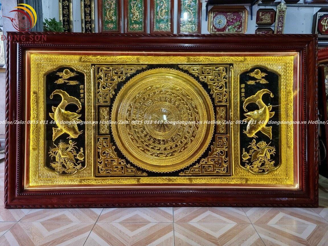Tranh trống đồng lục bình hoa sen mạ vàng 24K lắp tại anh Hưng - TP.Thanh Hóa