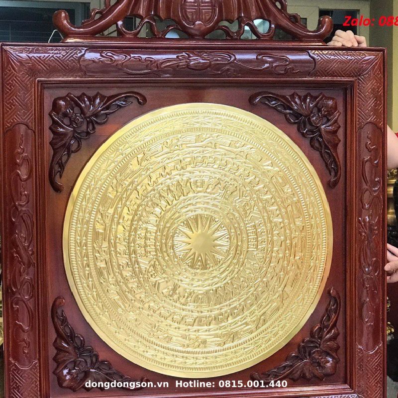 Tranh trống đồng đúc dát vàng 24K khung dơi KT 117x117cm