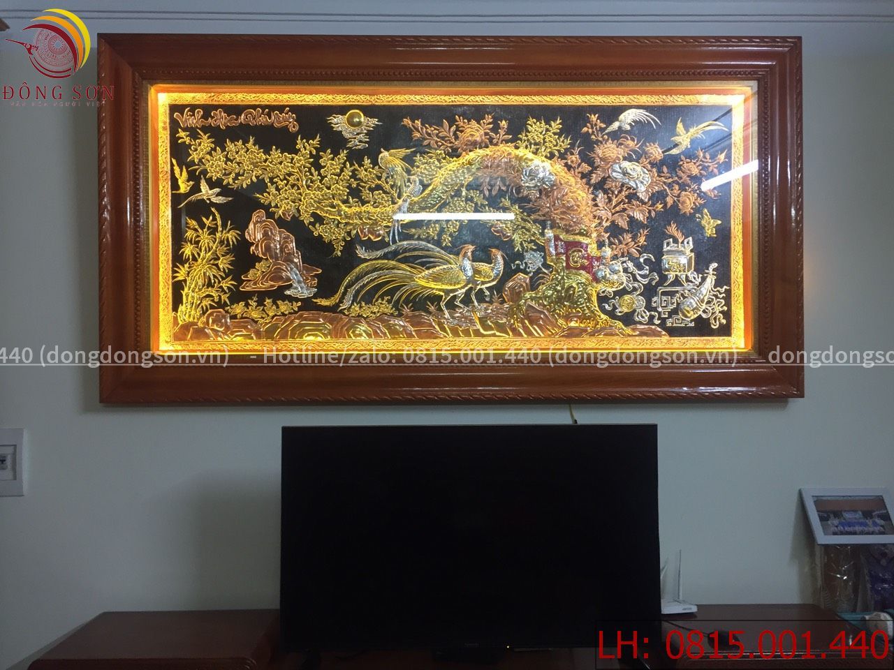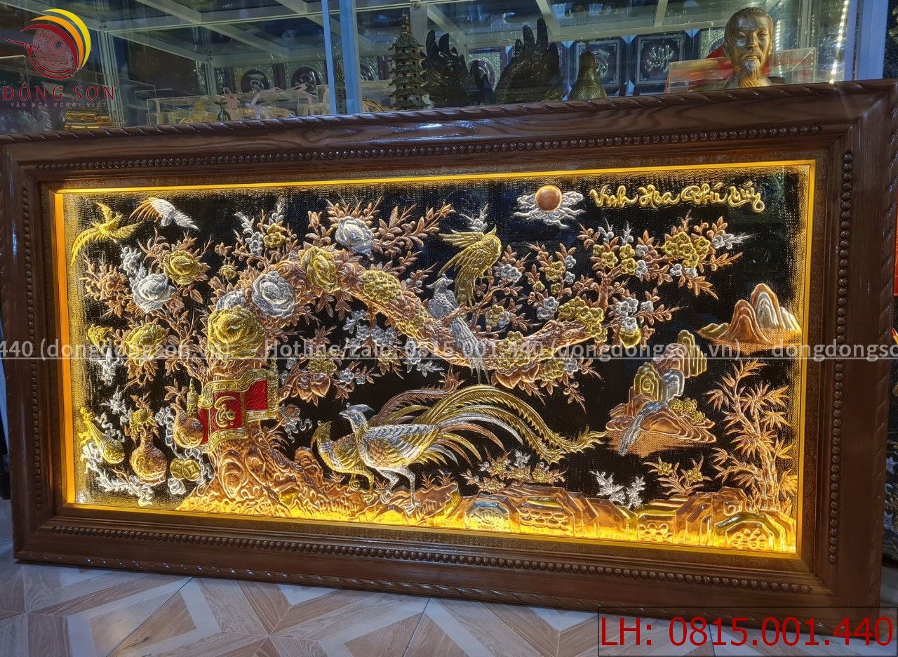 Tranh vinh hoa phú quý bằng đồng đỏ dát vàng bạc kích thước 170x90cm