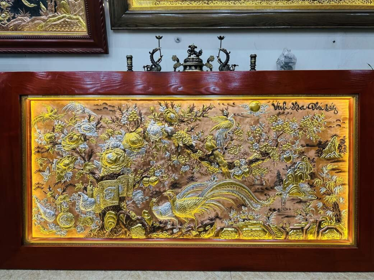 Tranh vinh hoa phú quý đồng đỏ 1m7x90cm xước dát