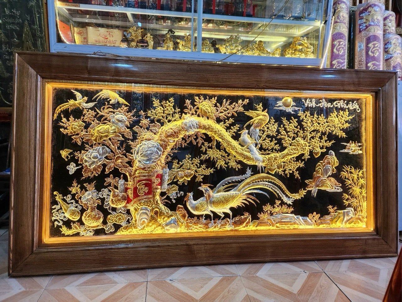 Tranh vinh hoa phú quý đồng vàng dát vàng bạc 2m3x1m2 chữ thọ