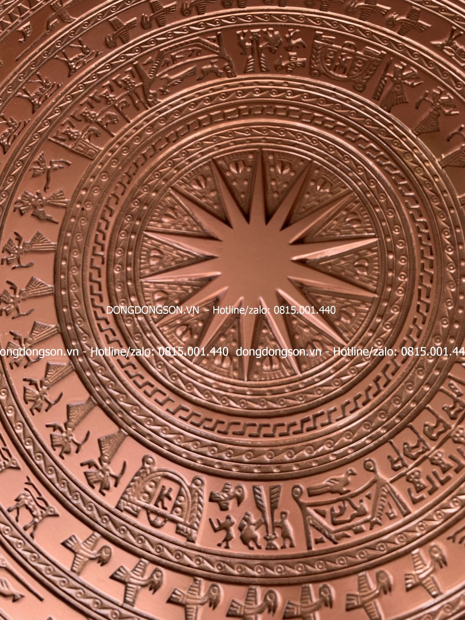 Trống đồng đông sơn đồng đỏ mộc chạm chìm hoa văn Ngọc Lũ | trống đồng ngọc lũ đường kính 50cm