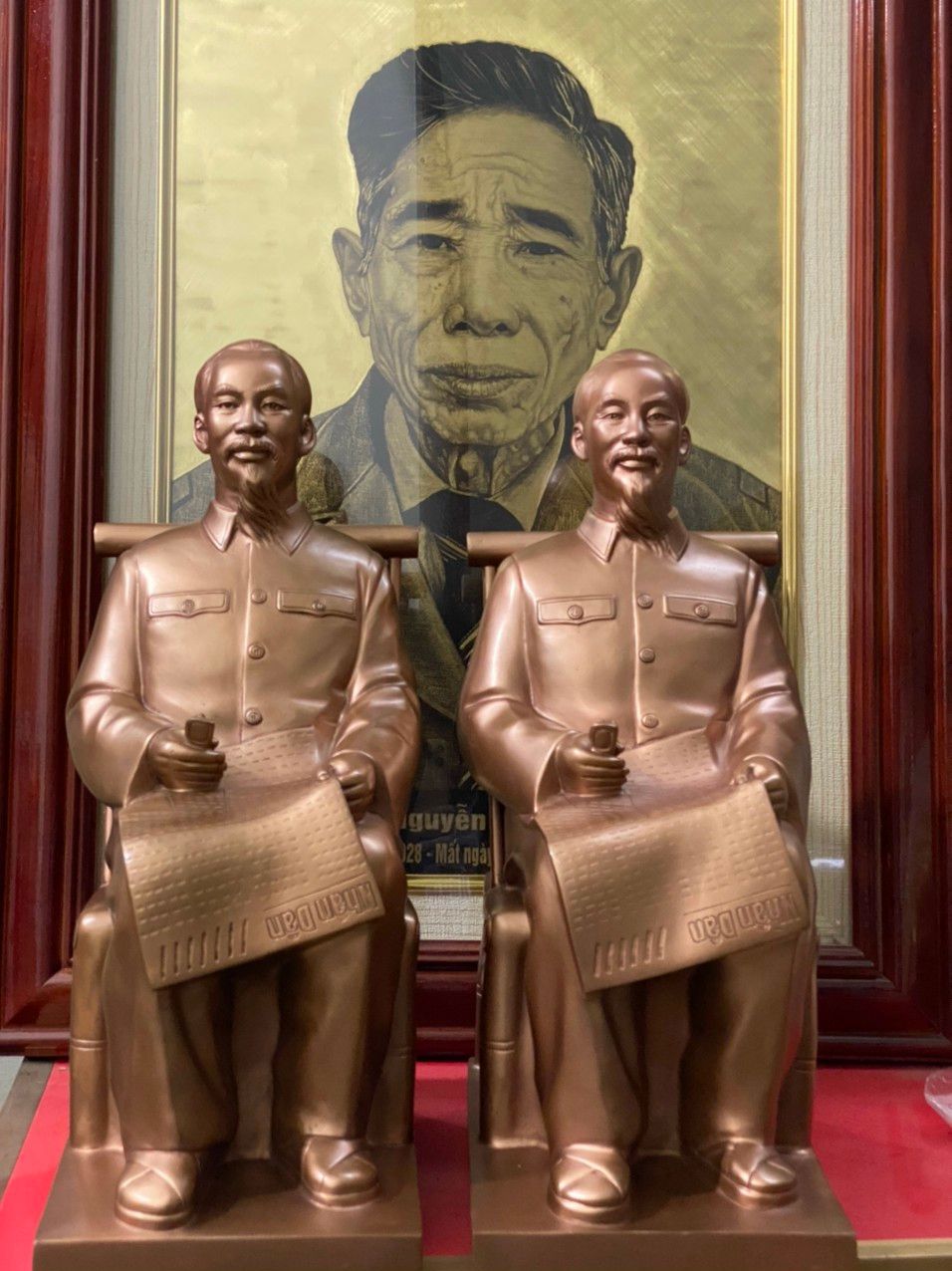 Tượng Bác Hồ ngồi ghế mây bằng đồng cao 42cm