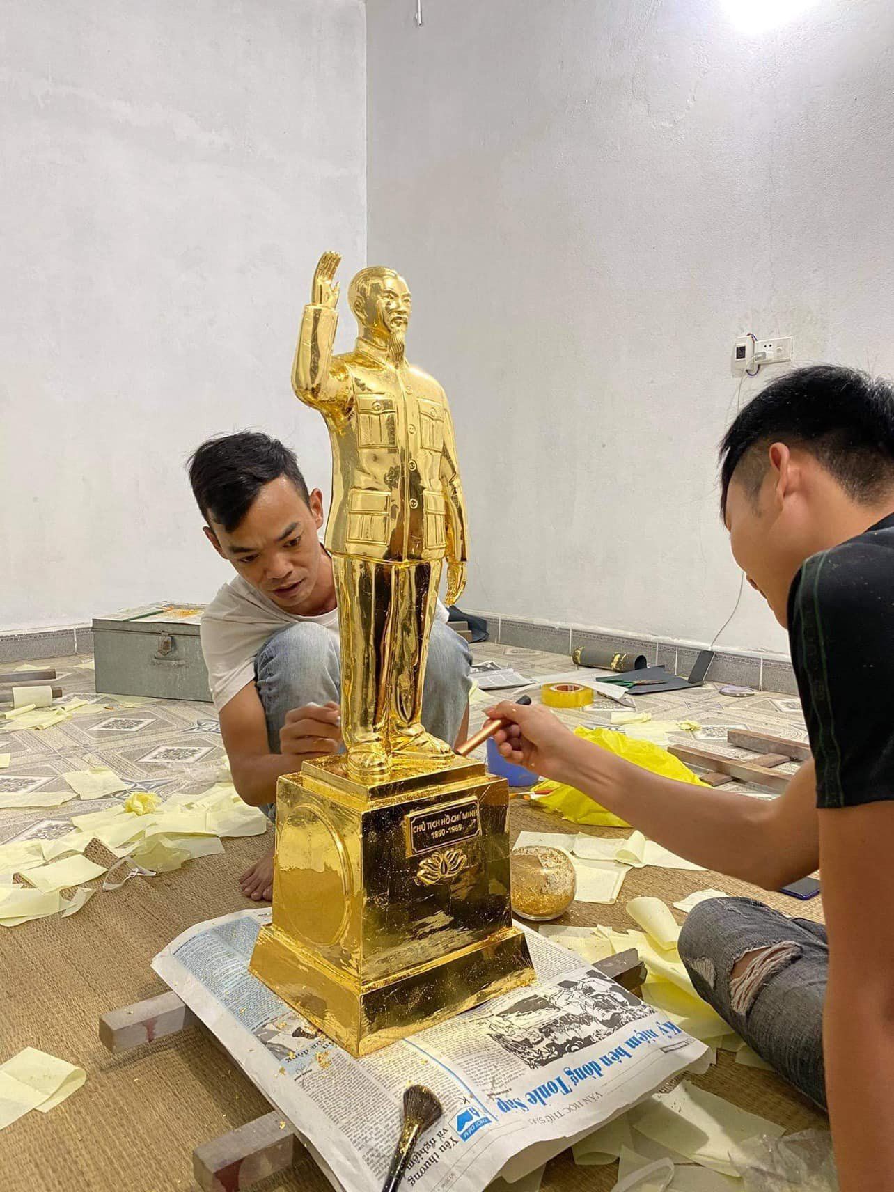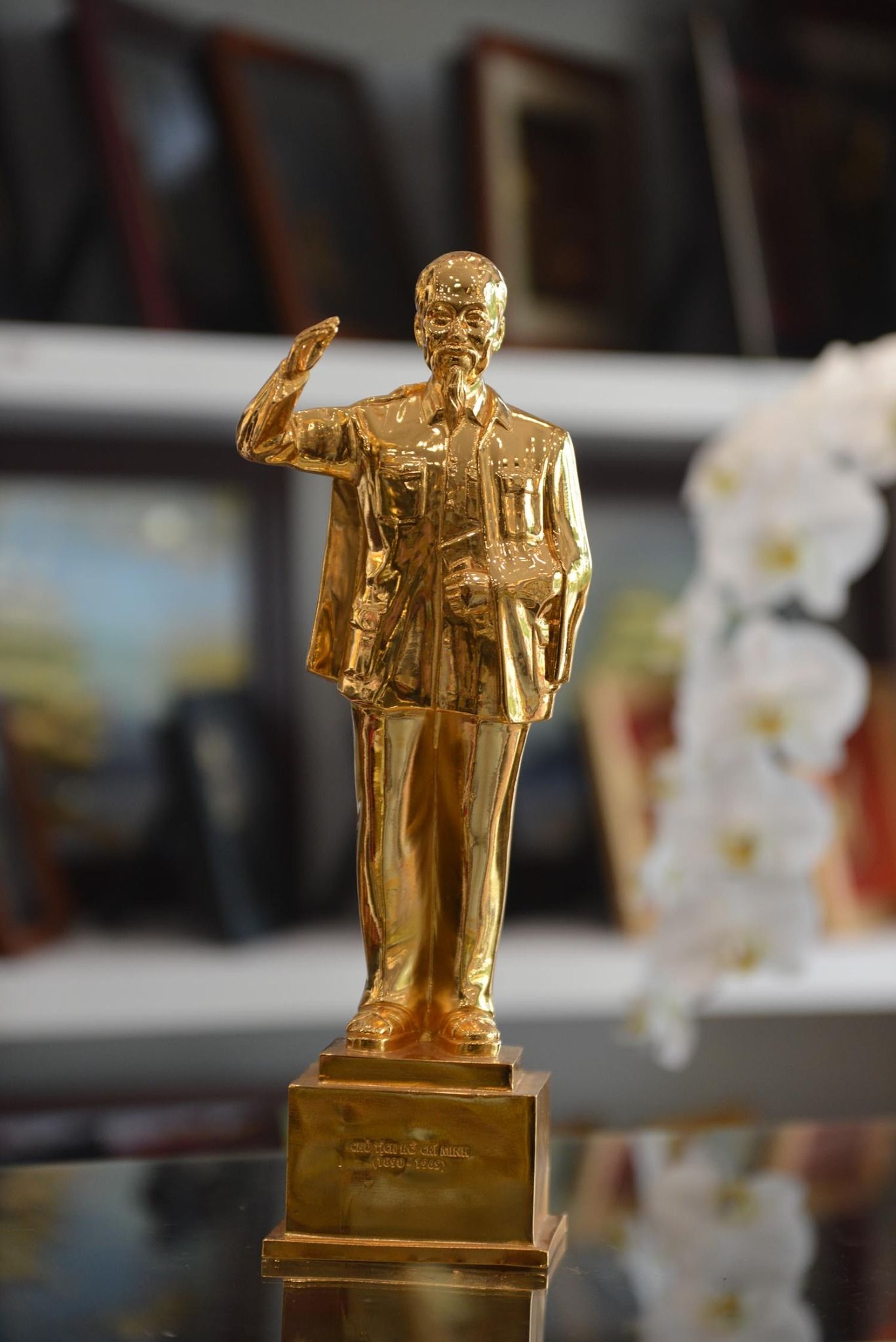 Tượng Bác Hồ vẫy tay chào bằng đồng mạ vàng 24K cao 42cm
