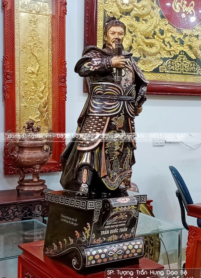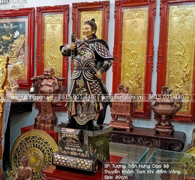 Tượng Trần Quốc Tuấn bằng đồng đỏ khảm tam khí cao 89cm - Hàng cao cấp