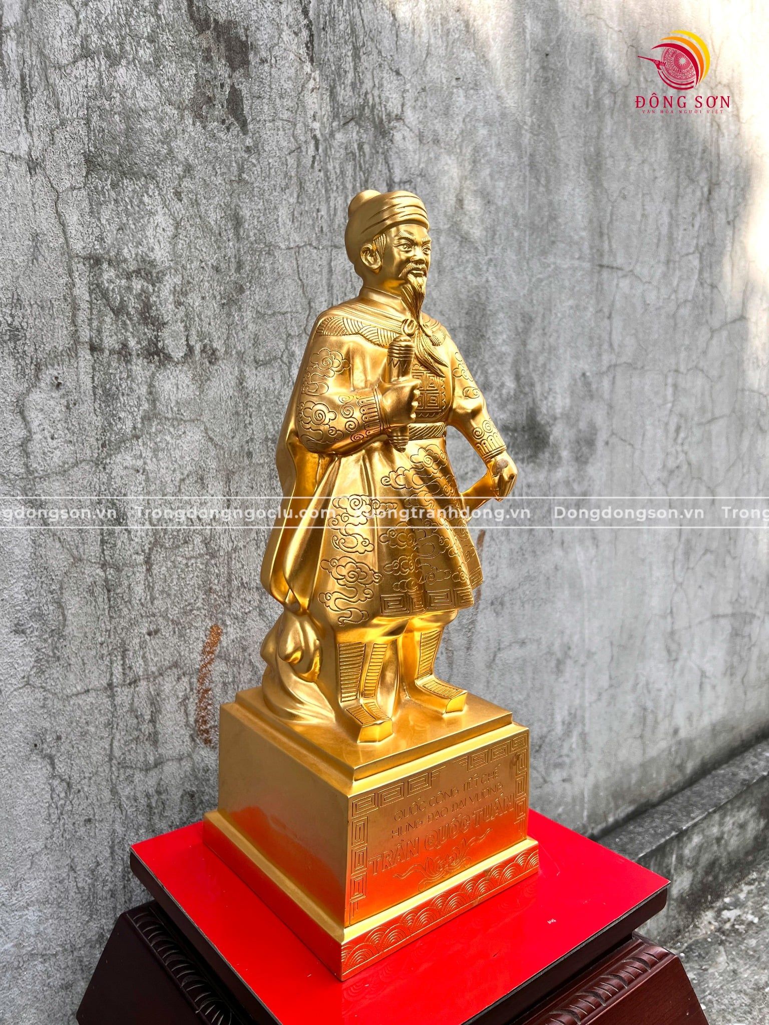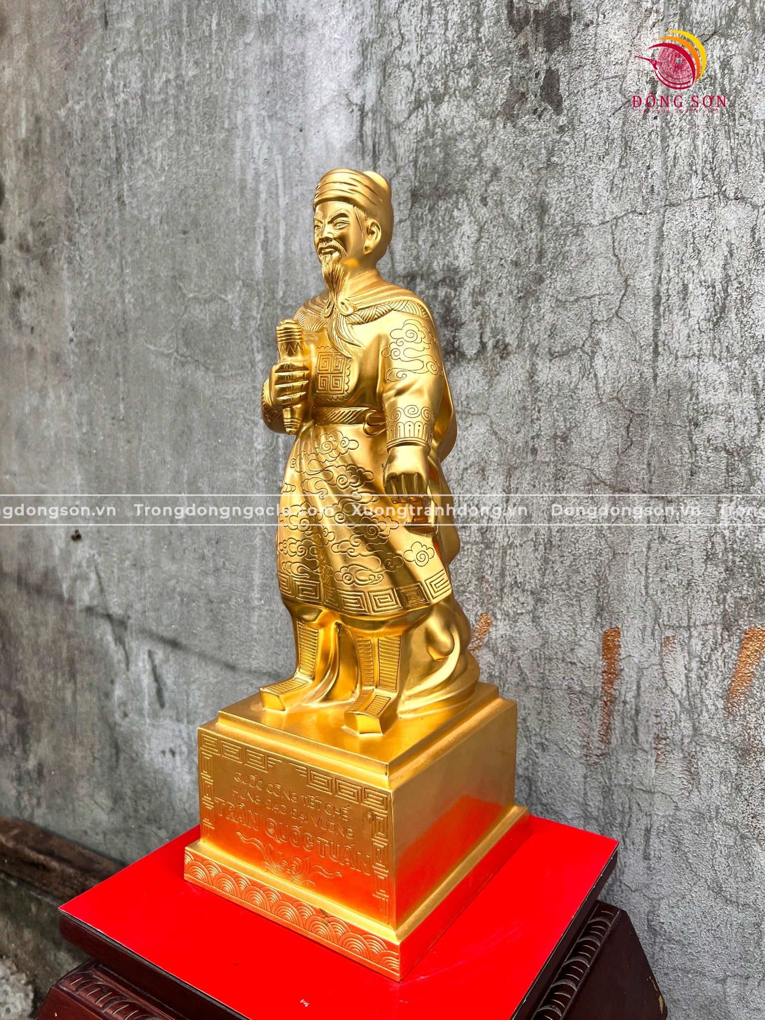 Tượng Trần Quốc Tuấn đồng đỏ dát vàng cao 50cm - Tượng đồng trang trí